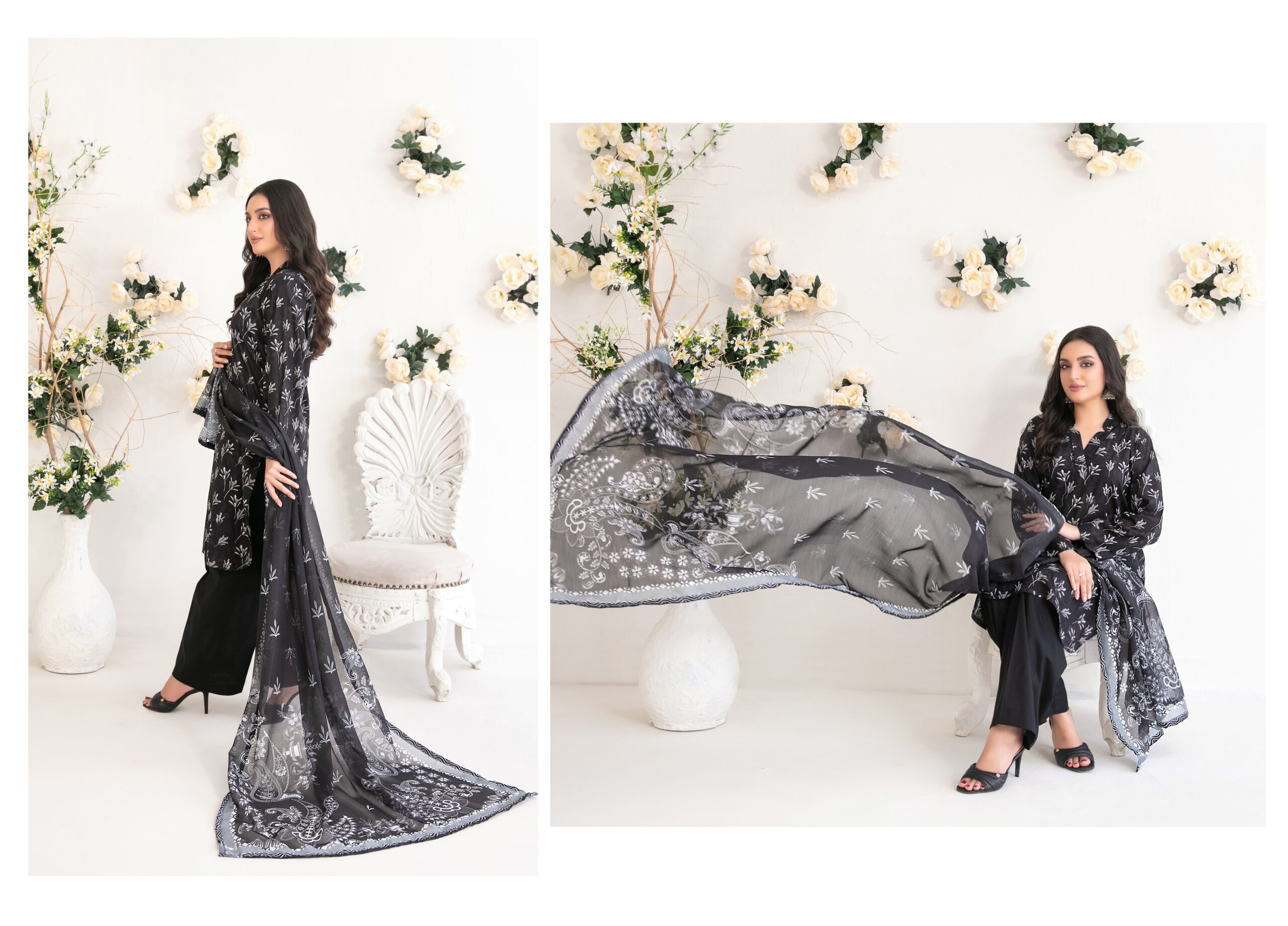 The premium lawn fabric ensures softness and airflow during warm weather, while the digitally printed dupatta adds a graceful, eye-catching touch. The dyed cambric trouser complements the outfit with a clean and polished finish.