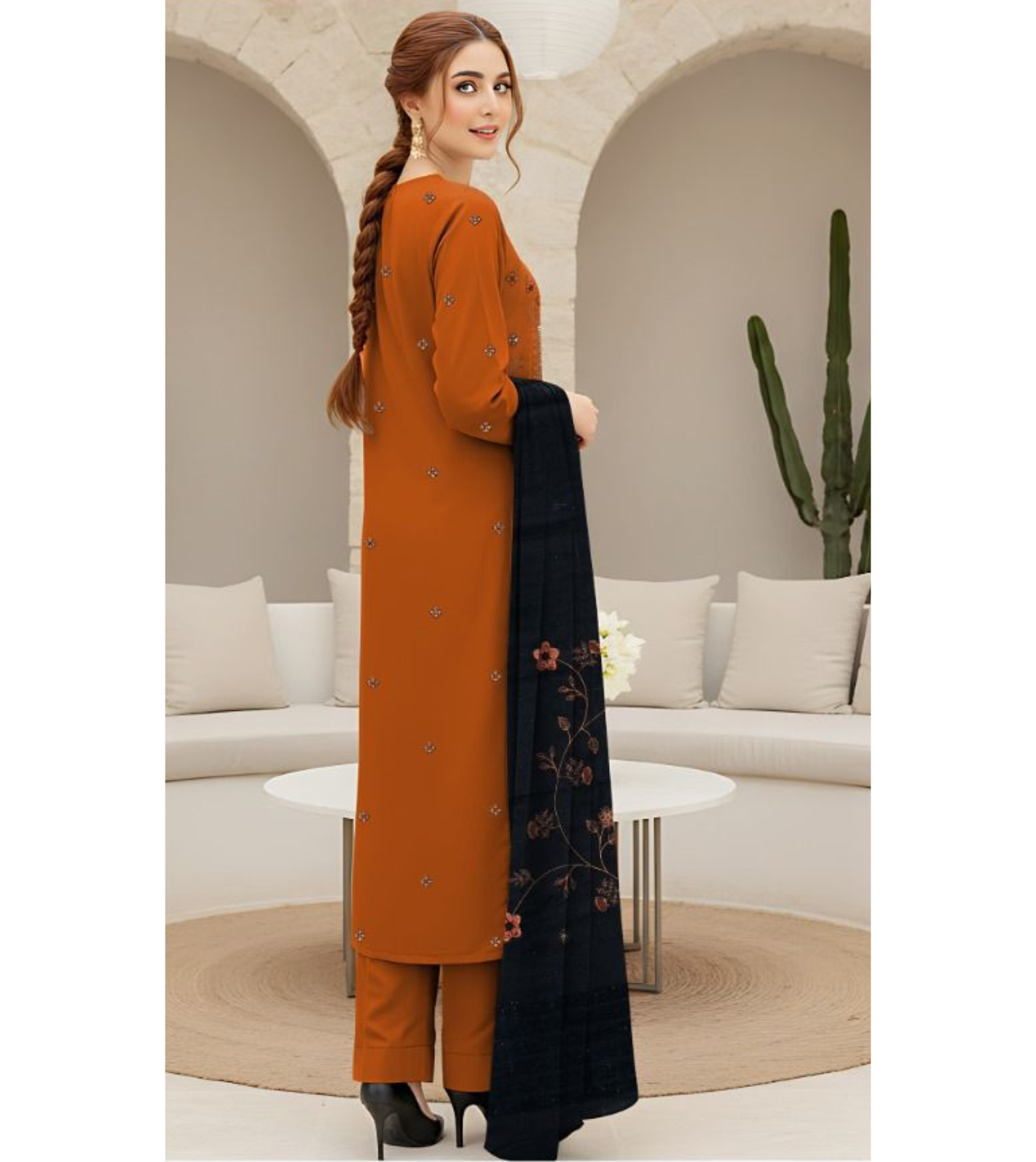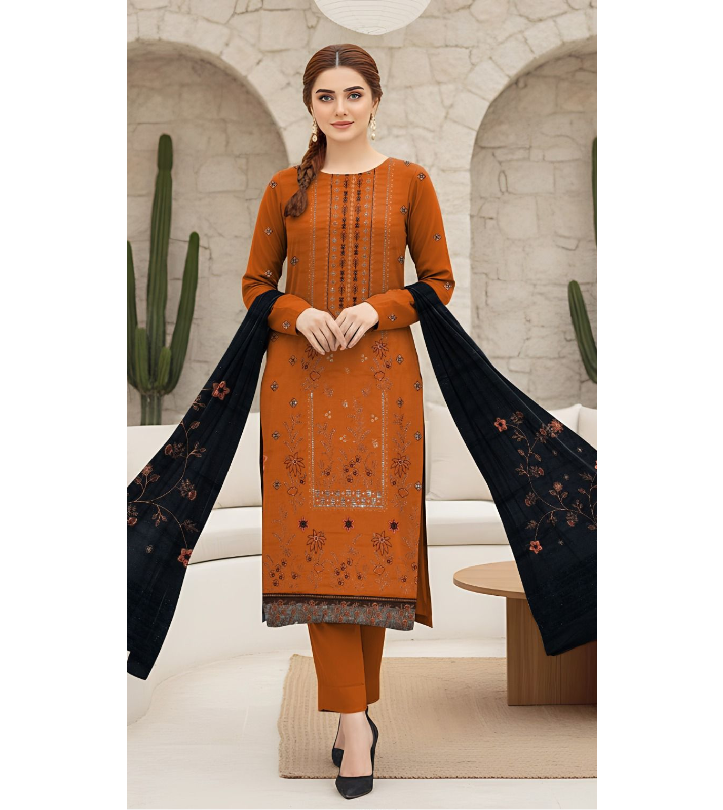 Dyed Chamki Jacquard Dhanak Heavy Embroidered 3-Piece Suit with Velvet Shawl – V55-D1