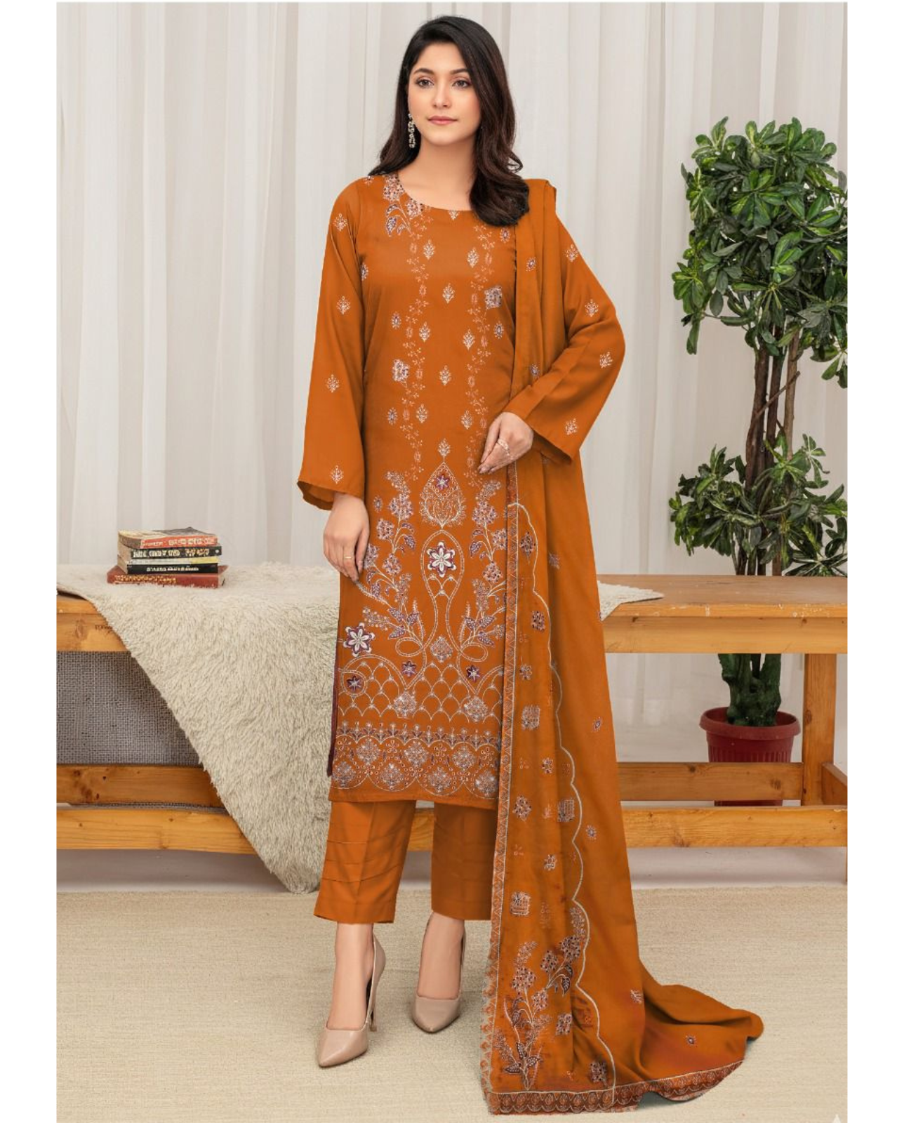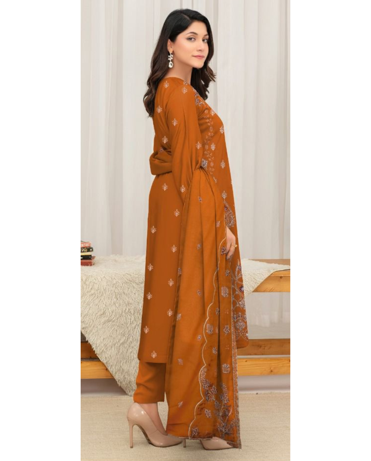 Dyed Dhanak – Heavy 3D Embroidered 3-Piece Suit – V45-D3