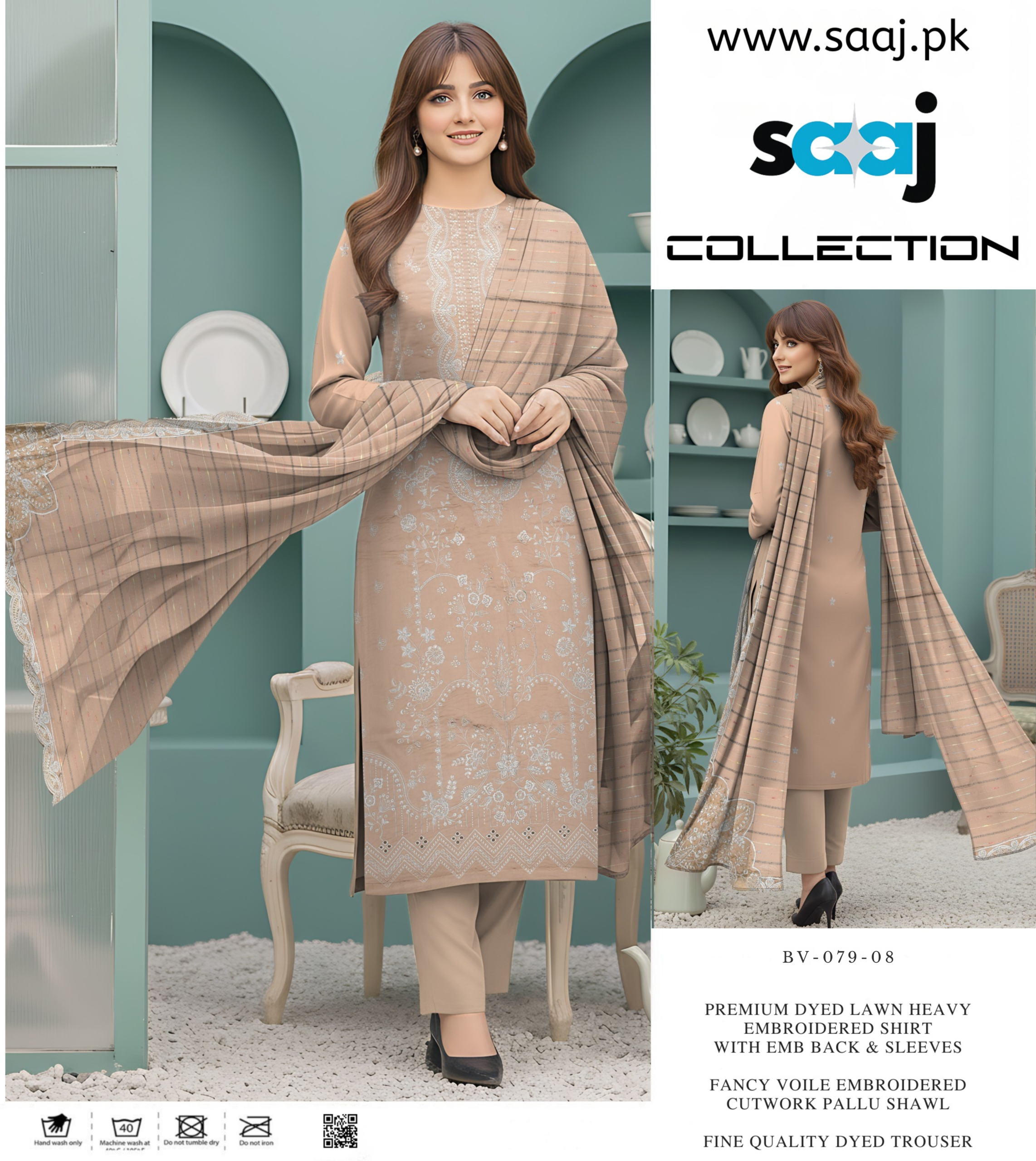 To maintain the beauty and longevity of your embroidered lawn suit: