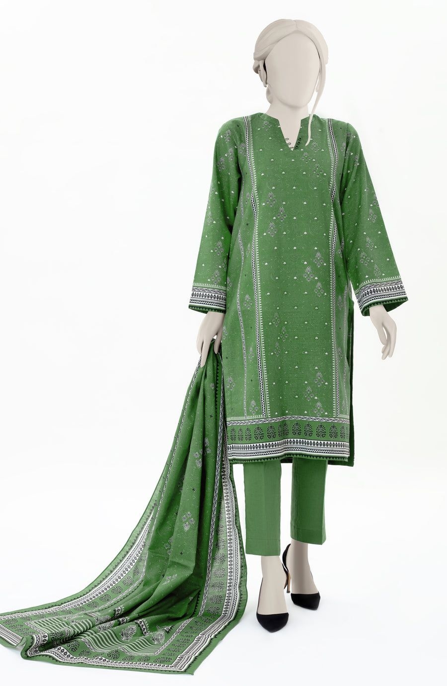 PRINTED KHADDAR 3PCS UNSTITCHED – GREEN