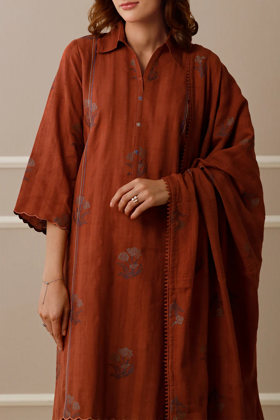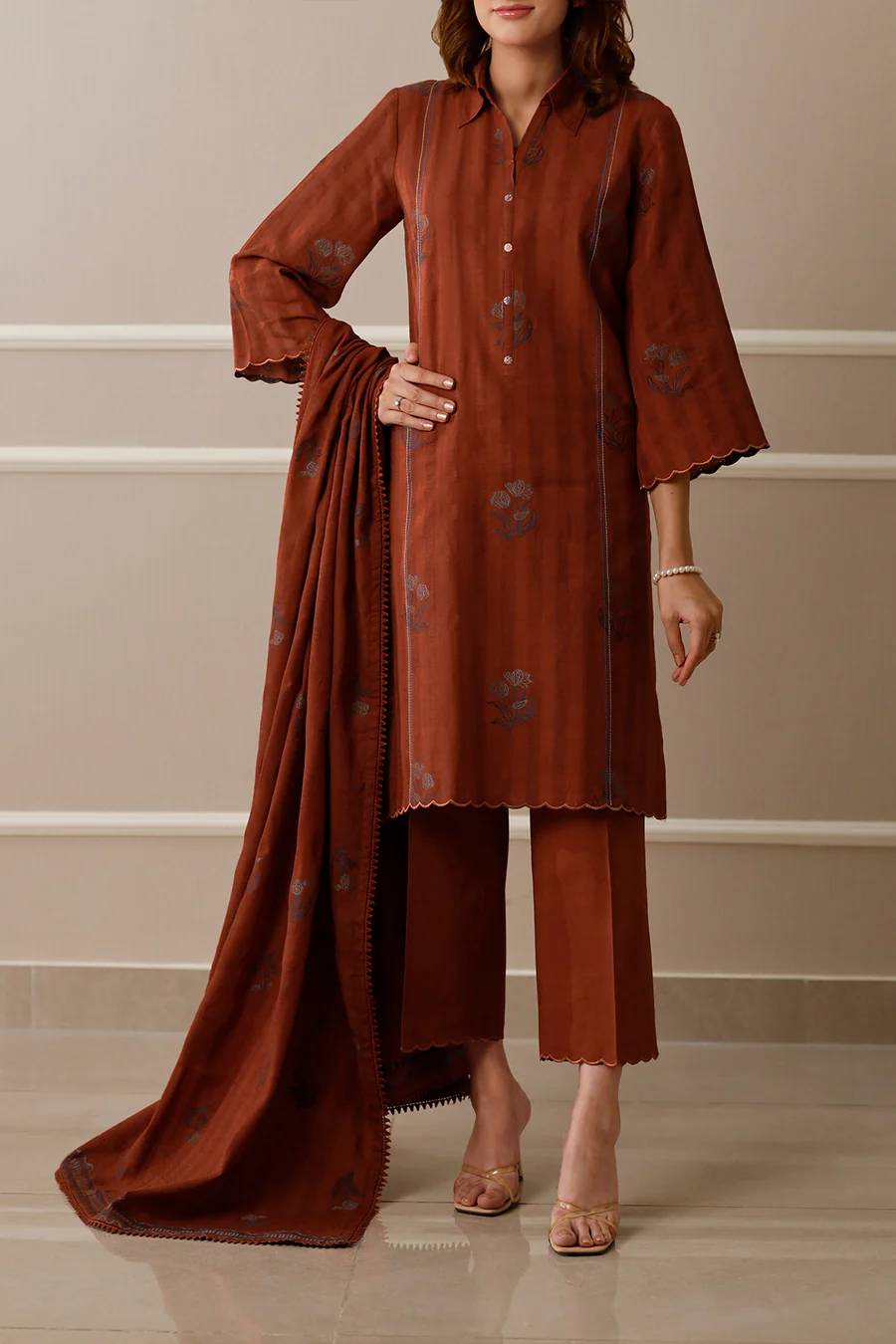 Dupatta: Beautifully printed khaddar dupatta designed to complement the shirt’s hues and motifs.